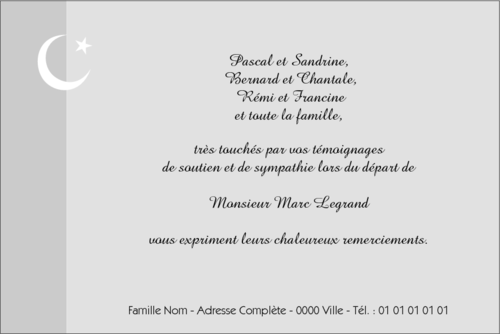 CARTE DE REMERCIEMENT DÉCÈS